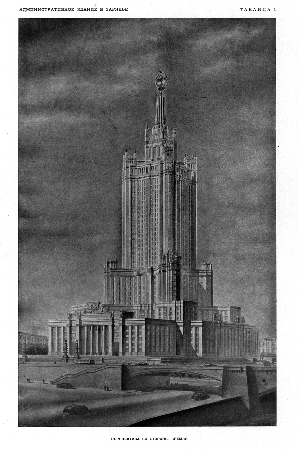 Д.Н.Чечулин. Административное здание в Зарядье. Перспектива с Москвы-реки. Проект. 1951 г.