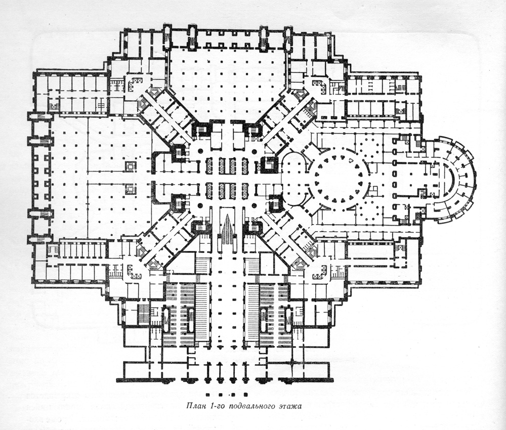 Д.Н.Чечулин. Административное здание в Зарядье. План 1-го подвального этажа.