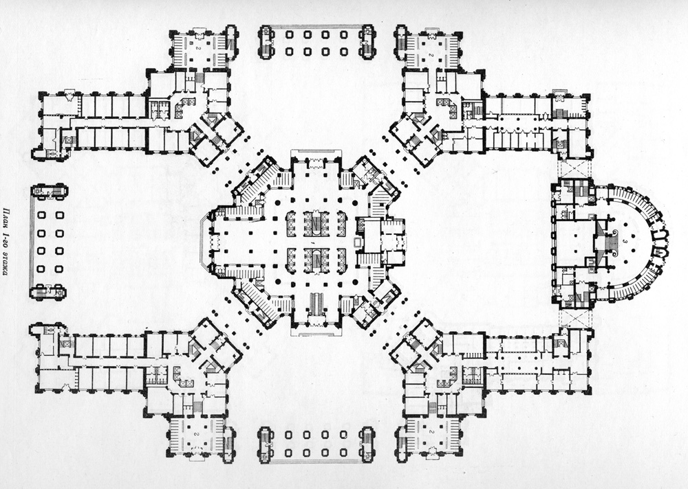 Д.Н.Чечулин. Административное здание в Зарядье. План 1-го этажа.