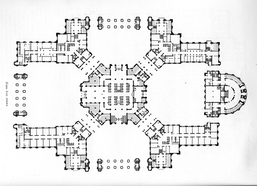 Д.Н.Чечулин. Административное здание в Зарядье. План 3-го этажа.