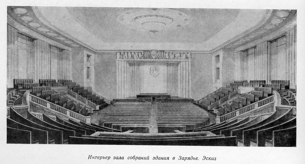Д.Н.Чечулин. Административное здание в Зарядье. Интерьер зала собраний. Эскиз